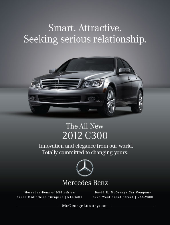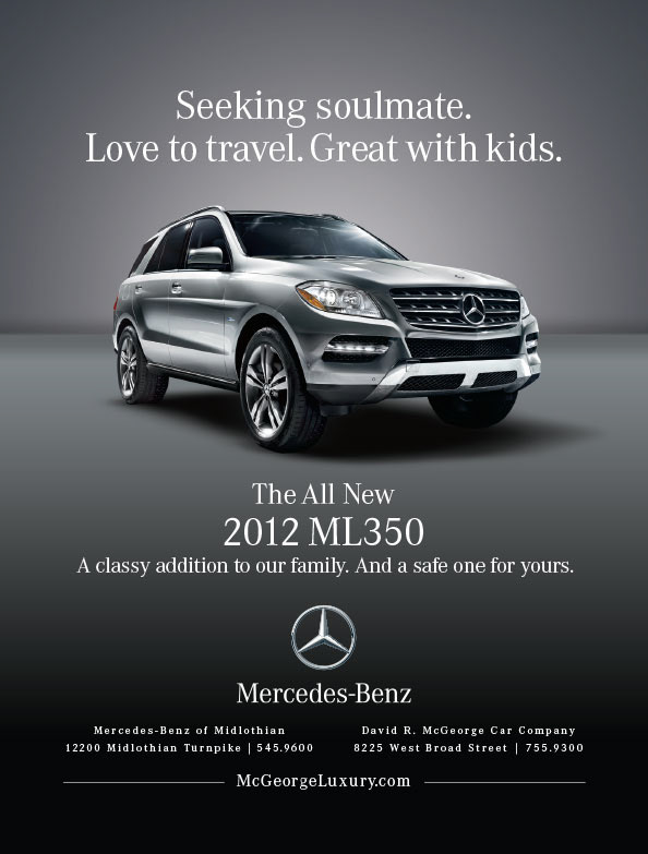This is a fun series we created for the two Richmond-area Mercedes dealerships, in which various 2012 models would post their classified personals in the hopes of attracting drivers with similar interests.