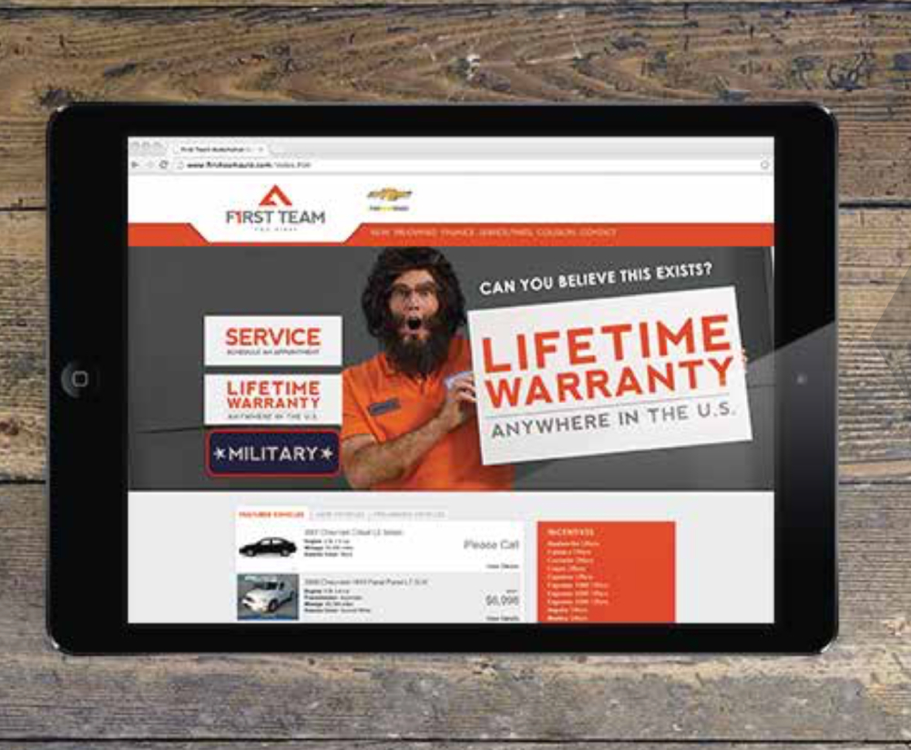 With an incredible lifetime warranty that keeps your vehicle covered anywhere in the US, First Team Auto offers the type of customer experience most of us never knew existed. But as the couple in this spot quickly learns, the warranty isn’t the only unusual thing happening at the dealership.